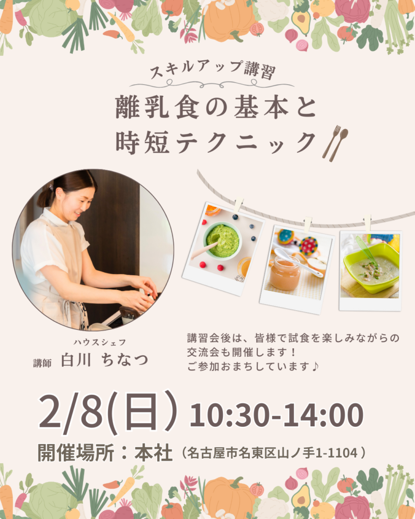 2026年初めの社内企画が、2月8日(日)の「離乳食講習+交流会」です。