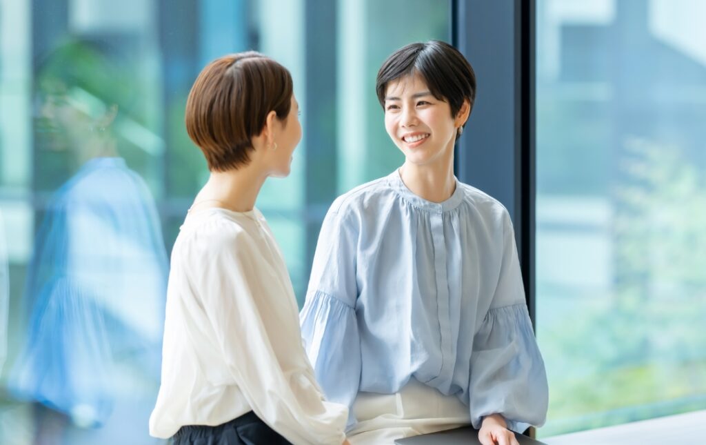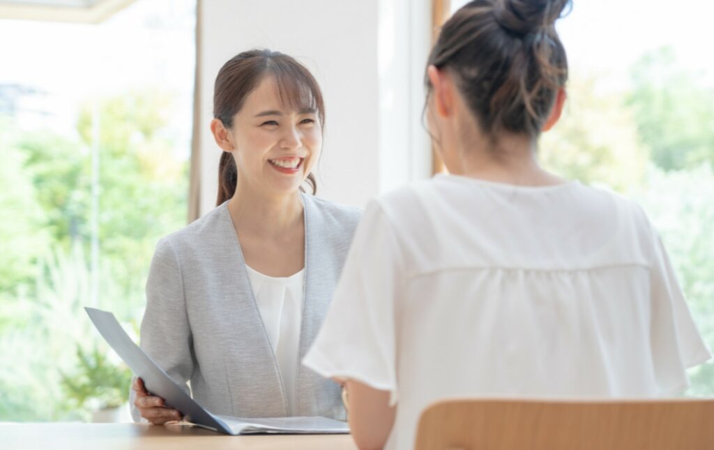 リズメリットは、スタッフの笑顔を守るため、月に一度来社にて個別面談を受けていただきます。